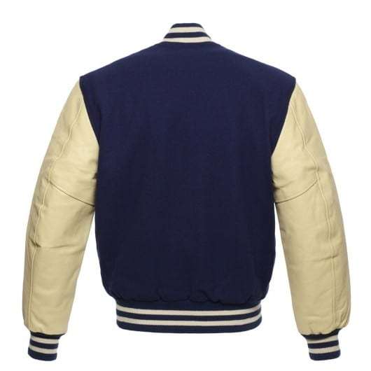 Navy Blue Letterman Jacket with Natural Leather Sleeves