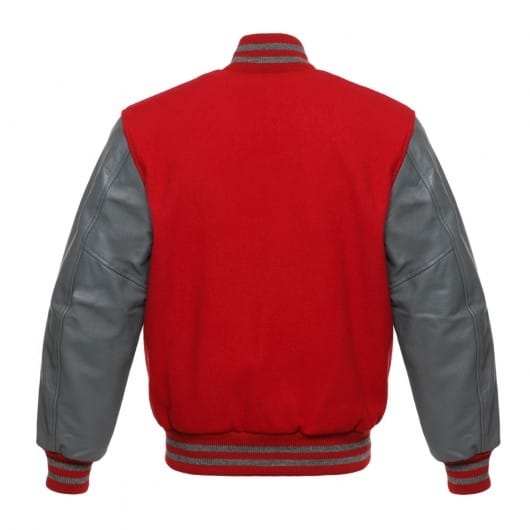 Red Letterman Jacket with Grey Leather Sleeves